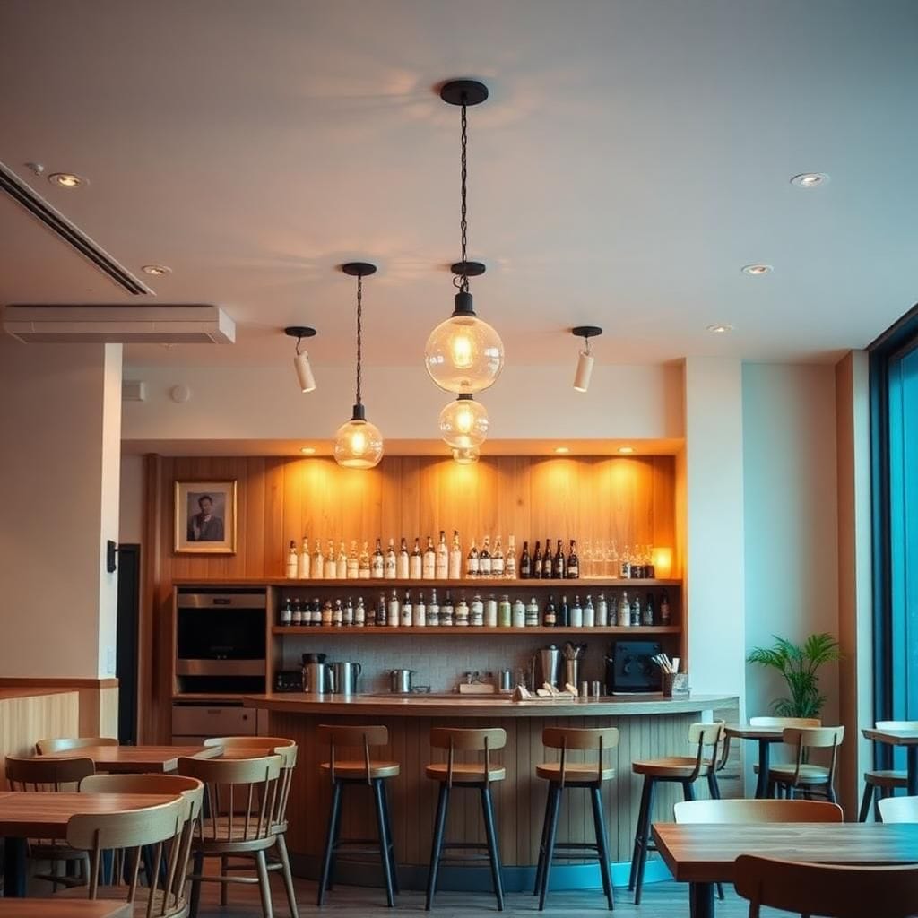 • Trang trí: Đèn thả nghệ thuật, tạo sự sang trọng.