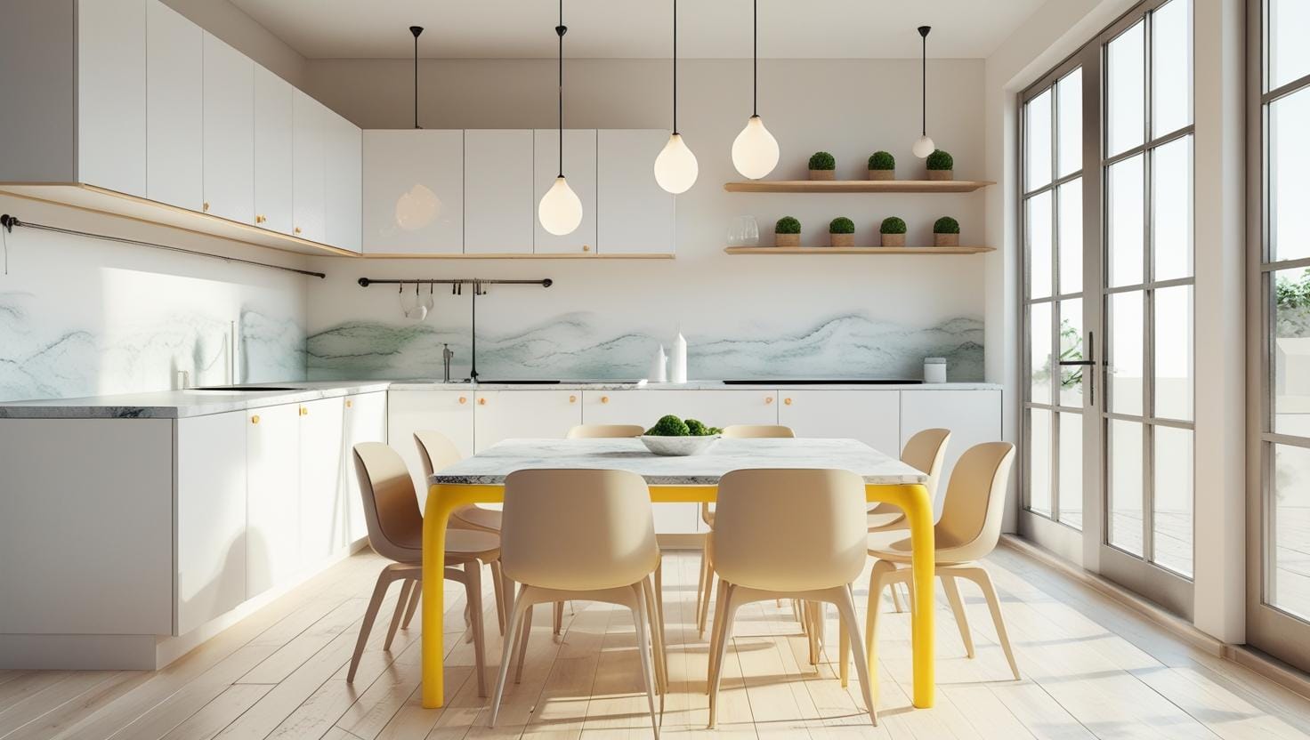 Phòng bếp cần thiết kế tiện dụng và khoa học. Vật liệu bề mặt dễ lau chùi, bố trí các khu vực nấu ăn, rửa chén và lưu trữ hợp lý là rất quan trọng. Các đồ nội thất như bàn ăn cũng nên được lựa chọn sao cho phù hợp với nhu cầu sử dụng và phong cách thiết kế chung của ngôi nhà.