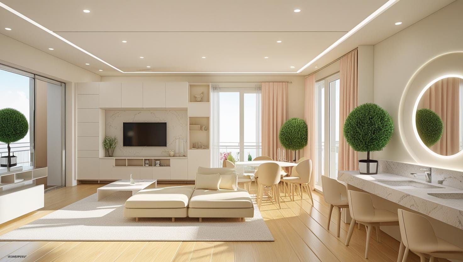 Sử dụng đồ nội thất đa năng, màu sắc sáng và gương để tạo cảm giác rộng rãi hơn. Bố trí hợp lý cũng rất quan trọng.