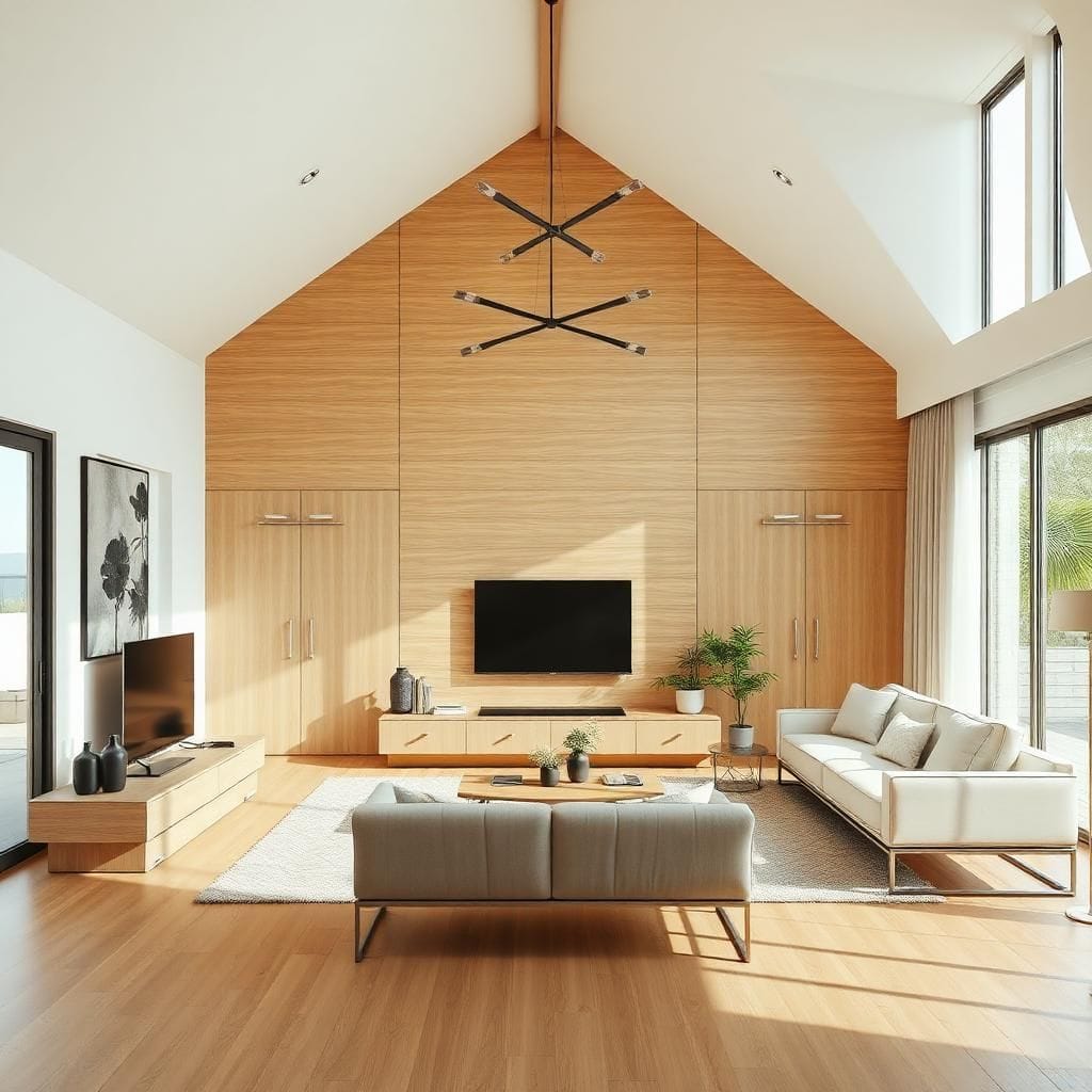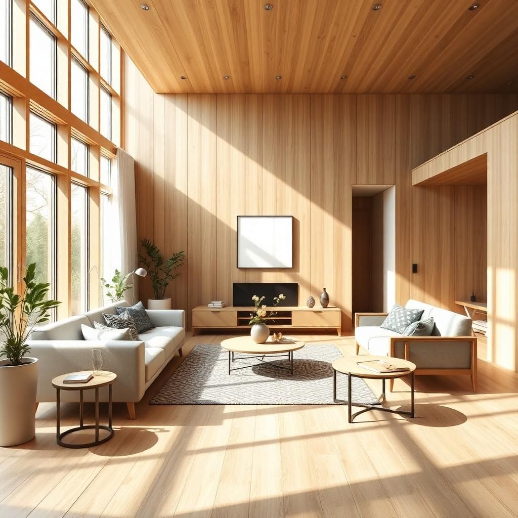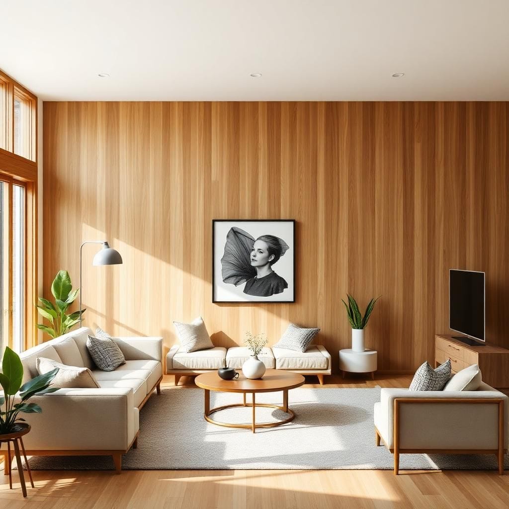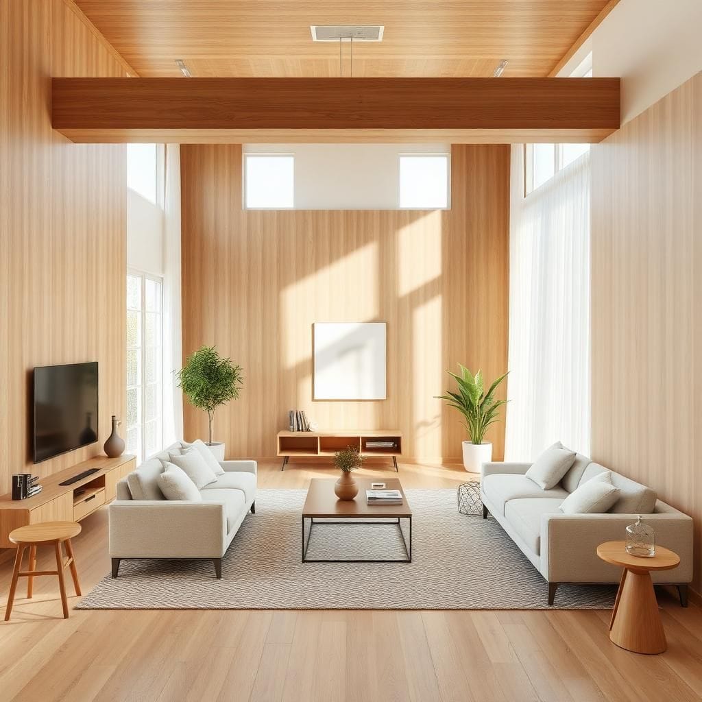 Sử dụng gam màu sáng (trắng, be, xám nhạt), gỗ tự nhiên, ánh sáng tự nhiên. Mang đến cảm giác thanh lịch, gần gũi thiên nhiên.