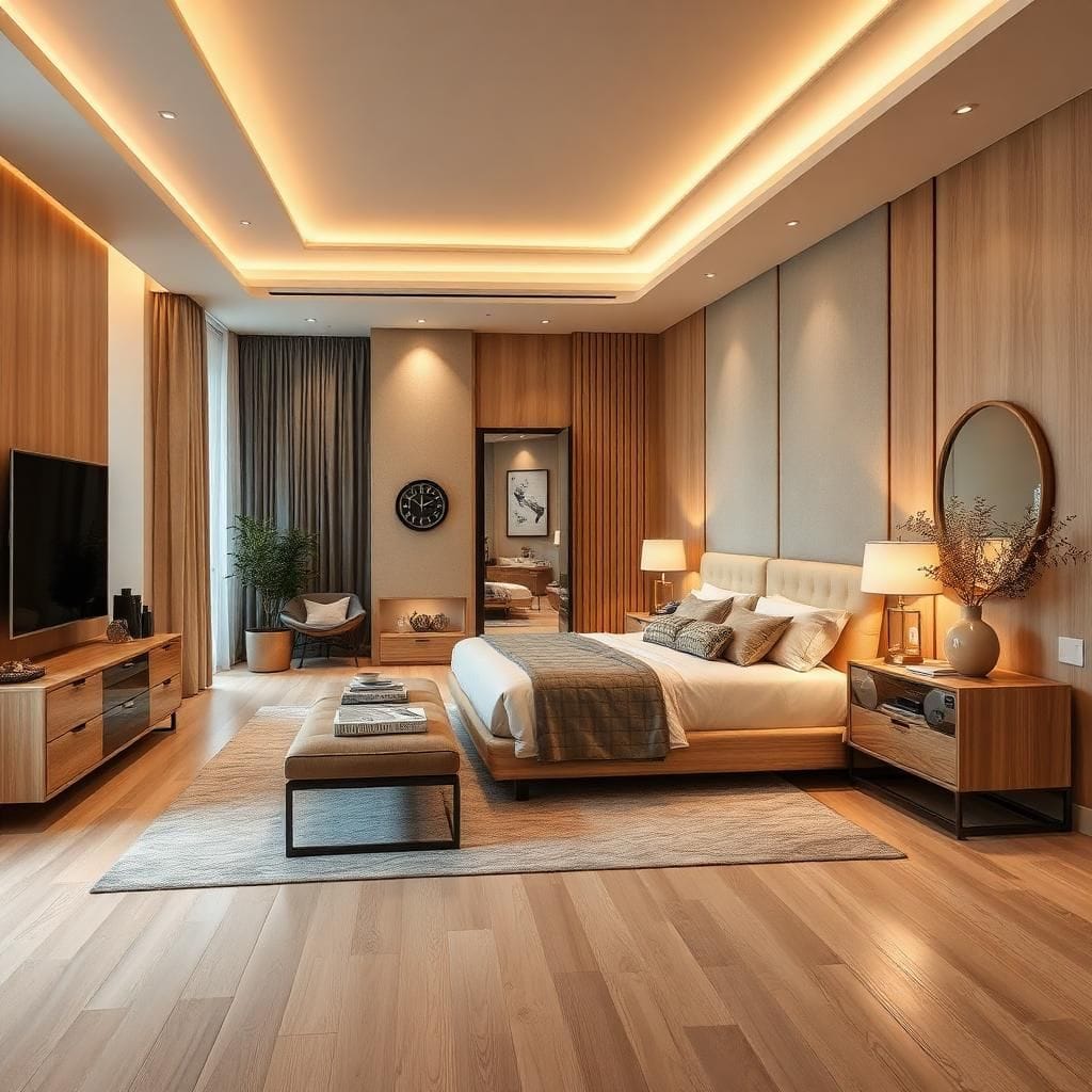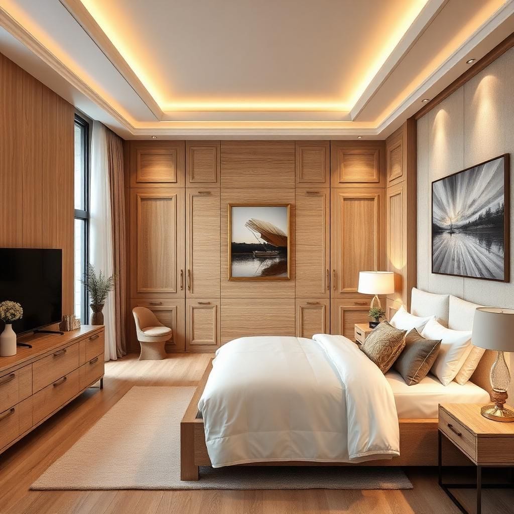 Giường ngủ: Có ngăn kéo hoặc giường bọc nệm sang trọng.