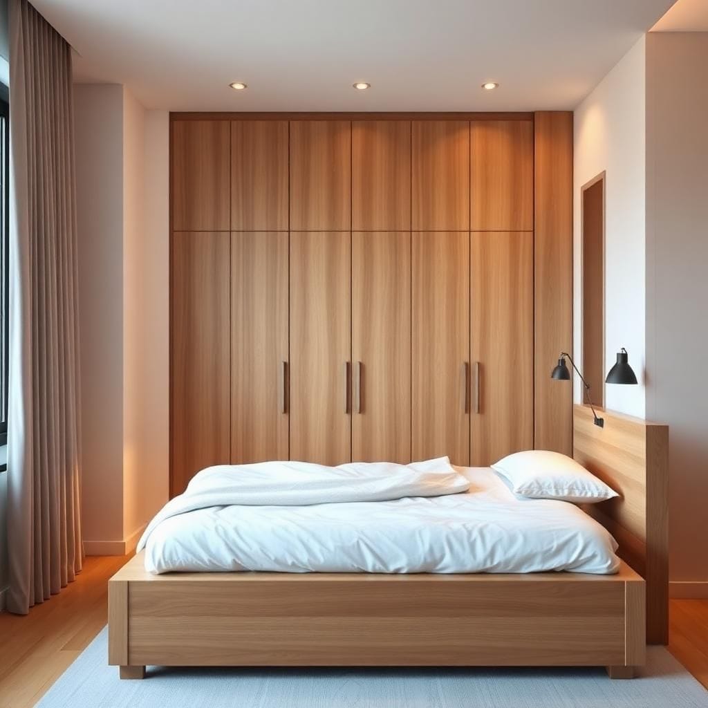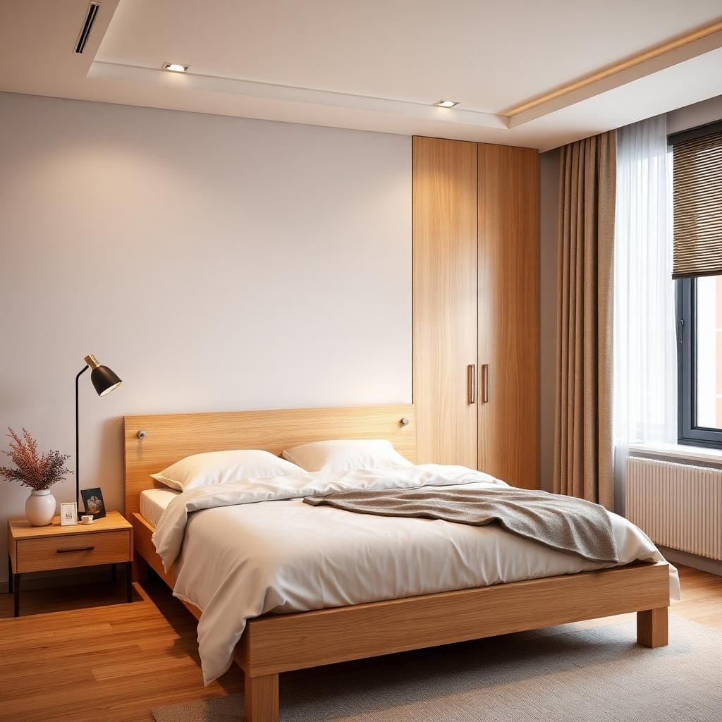 Nội thất: Giường có ngăn kéo, tủ âm tường để tiết kiệm diện tích.