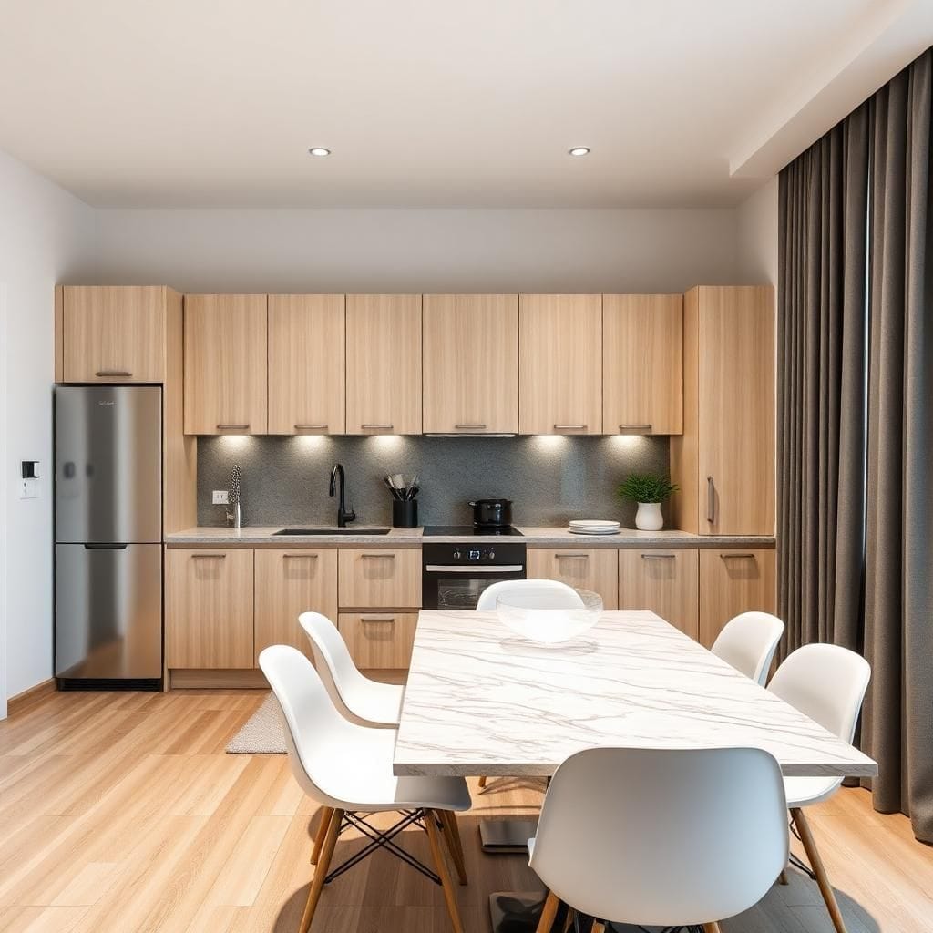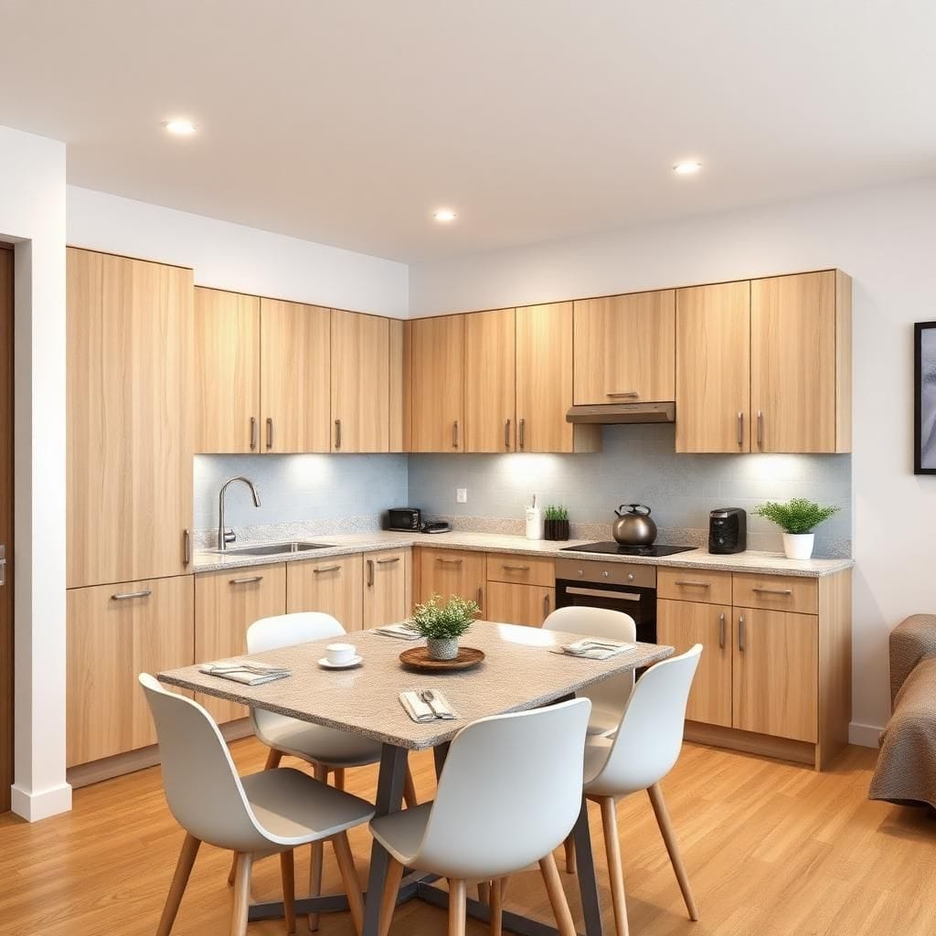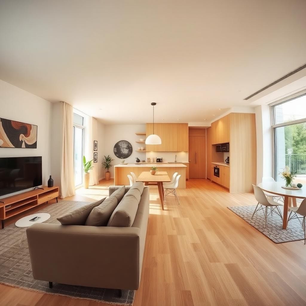 Thiết kế mở: Kết hợp phòng khách và bếp để tối ưu diện tích.